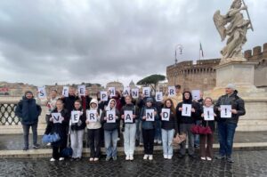 Nach einer kurzen, individuellen Mittagspause setzte Regen ein, der uns bis zum Abend begleitete. Trotzdem ließen wir uns die Stimmung nicht verderben. Am Petersdom erklärte uns Georg also die wichtigsten Fakten, bevor wir weiter zur Engelsburg gingen, die ursprünglich als Grabmal Kaiser Hadrians erbaut und später zur päpstlichen Festung wurde. Danach fuhren wir – auch wegen unserer langsam schmerzenden Füße – mit der Metro zur Kapuzinergruft, wo Elias uns die besondere und etwas unheimliche Gestaltung mit den Gebeinen der Mönche näherbrachte.