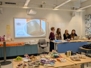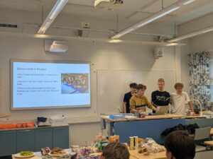 On what we considered the best day of the week, we met at the train station in Kerava at 8:30 AM. From there, we went to the Sinebrychoff beverage factory, where we had an interesting tour of the facility and gained insight into the production process. We were also allowed to take two or even three of the drinks produced there.We had lunch at the school and then worked in groups on a project about Finnish and German food culture, which we only finished on Friday. Our group, for example, created a Kahoot quiz about typical Finnish food.Later, we took a bus to Lake Kuusijärvi. There’s a large „sauna park“ with cabins and an ice-cold lake for cooling off between sauna sessions. The sauna tradition is an important part of Finnish culture, and almost all residential buildings have a private sauna. We had reserved a small hut where we could eat and try typical Finnish snacks, and almost everyone went to the sauna. When we went to the sauna with the Finns, we were surprised to see them sitting on a paper towel, as we had all brought our own towels inside. It was very cozy there. Many of us went ice bathing twice (at -1 degrees Celsius!), which, after some effort, was a truly incredible and special experience. The grilled sausages tasted especially good afterward.