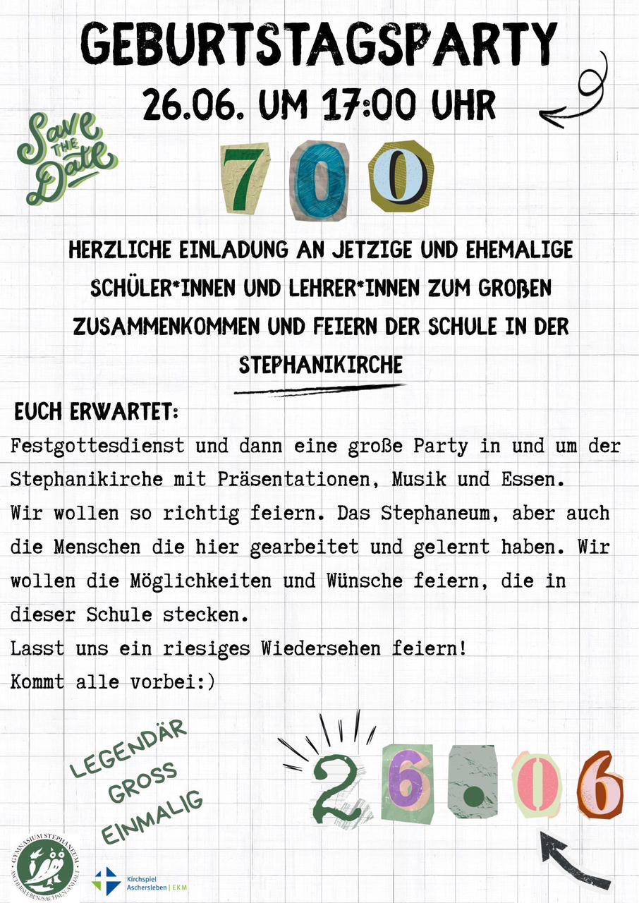 Kommt zur Geburtstagsfeier 26.6., 17 Uhr, Stephanikirche