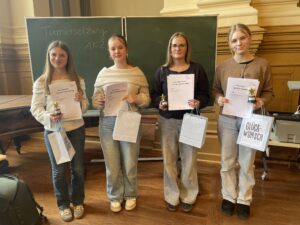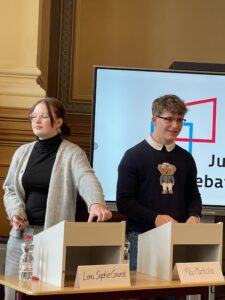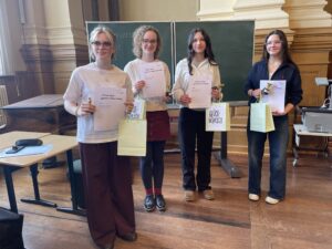 Vier unserer teilnehmenden Schüler kamen ins Finale: Helene Hübner, Emma Knall ( SEK II ), Tilda Bremer und Nina Heier ( SEK I ). Emma Knall und Nina Heier debattierten sich auf den 2. Platz. Damit werden sie uns beim Landeswettbewerb in Magdeburg vertreten. Wir sind sehr stolz darauf und wünschen weiterhin viel Erfolg!
