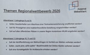 Am 19.02.26 fand in Bernburg am Carolinum unser diesjähriger Regionalwettbewerb „Jugend debattiert“ statt. Die Themen waren wieder sehr vielfältig, lagen nicht immer im Interessenbereich von Jugendlichen. Unsere teilnehmenden Schüler waren motiviert und gut vorbereitet von der AG -Leitung des SpeechTeams: Leo Kain und Anna Mantel. ( Klasse 12 )