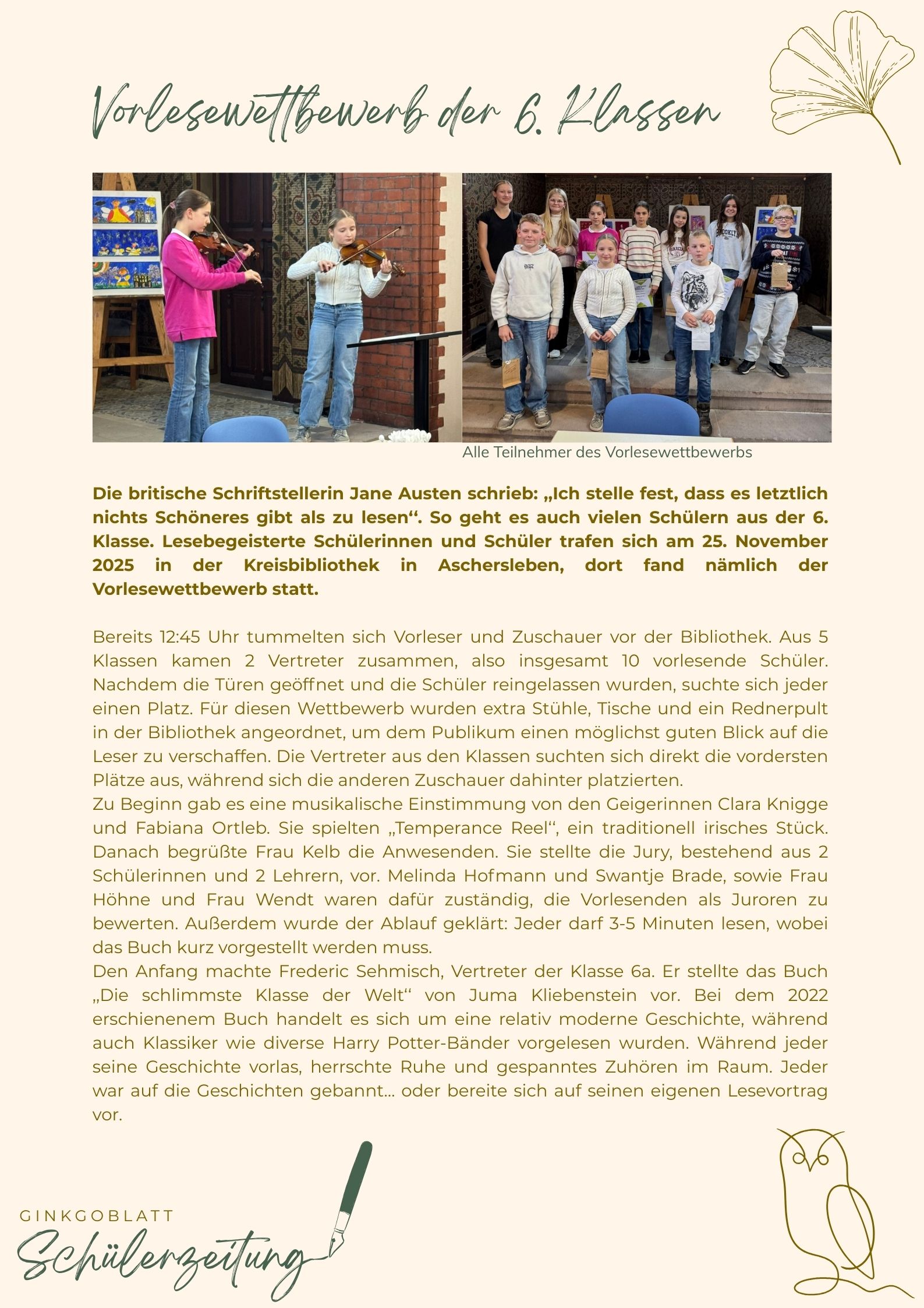 Vorlesewettbewerb der 6. Klassen