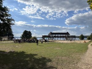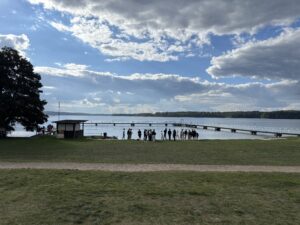 Da ich selbst rückwärtige Dienste zu erledigen habe, fahre ich mit meinem Auto hinterher und überhole einen nach dem anderen. Manche Gruppen machen schon wieder Pause auf dem Parkplatz oder rollen einfach so dahin. Eine Busgruppe hat die „Notdurftpause“ besonders hart getroffen. Sie hielten auf einem Parkplatz mit 2 Dixi Toiletten! Die Schlange, die davor stand, war lang. Naja, belohnt wurden sie mit einem wahrscheinlich toll zusammenschweißenden Gemeinschaftserlebnis. Der Bus war dann auch der letzte, der den Werbellinsee zu Gesicht bekam.