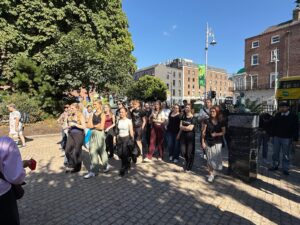 Our Monday started right away with a highlight: a walking tour through Dublin. At Trinity College, our friendly tour guide Vanessa was already waiting for us and welcomed us warmly. From there, we were diving together into the streets of Ireland’s capital. One of the most exciting parts was following the footsteps of Oscar Wilde. In a park, we discovered his colorful statue, a perfect spot for our group photo, which will surely remain a lasting memory. As we walked through the city, we got a varied impression of Dublin: historical sights, lively shopping streets, and green parks. Along the way, we also collected plenty of ideas of how to spend our free time.