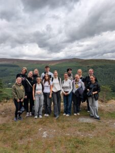 Angekommen im Wicklow Mountains National Park verschwendeten wir keine Zeit und machten uns sofort auf den Weg, den Wald und die Natur zu erkunden. An einem wunderschönen See wurden die ersten Fotos geschossen und eine kleine Pause eingelegt, um unseren Hunger stillen. Weiter ging‘s. Der nächste Anstieg am Berg zwang uns dazu, einige unserer Gruppe zurückzulassen. Frau Steinmetz, Milena, Josy und Marie gingen zurück zum Anfang der Strecke. Aber wie man so schön sagt: „10% Verlust ist immer.“